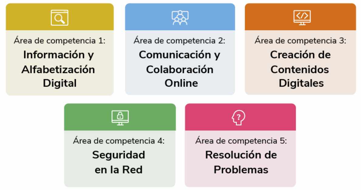 cual incluye áreas de competencia como la información y alfabetización digital,